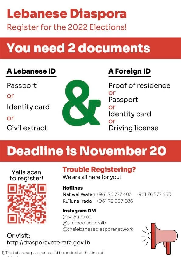 Help Sawti keep the registration momentum going by sharing this flier with your friends and family via Whatsapp. You can also print it out and distribute copies at your favorite Lebanese shops and restaurants in your city.