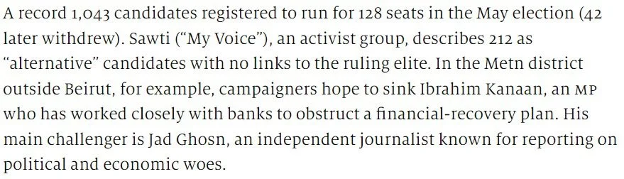 A major component of Sawti’s platform is disseminating information that will allow Lebanese people to “explore the alternative,” which involves featuring alternative political parties that adhere to Sawti’s strict vetting criteria. These criteria include: